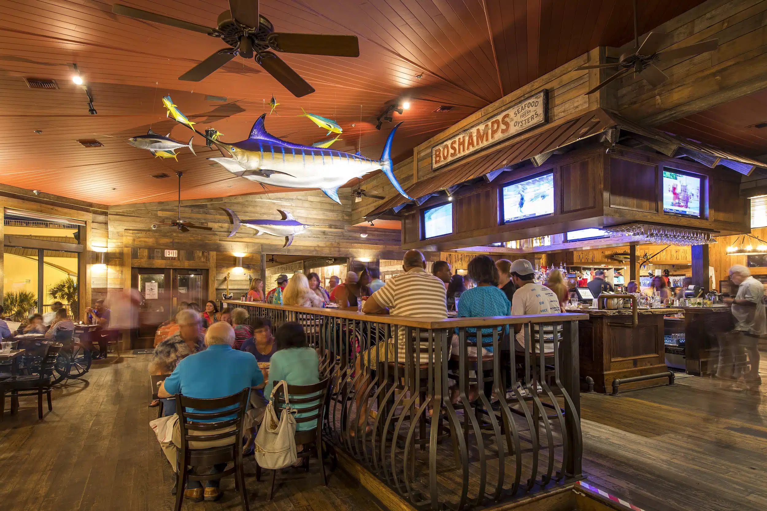 Locally sourced Southern-style seafood served in a casual setting with ocean views & 2 full bars.