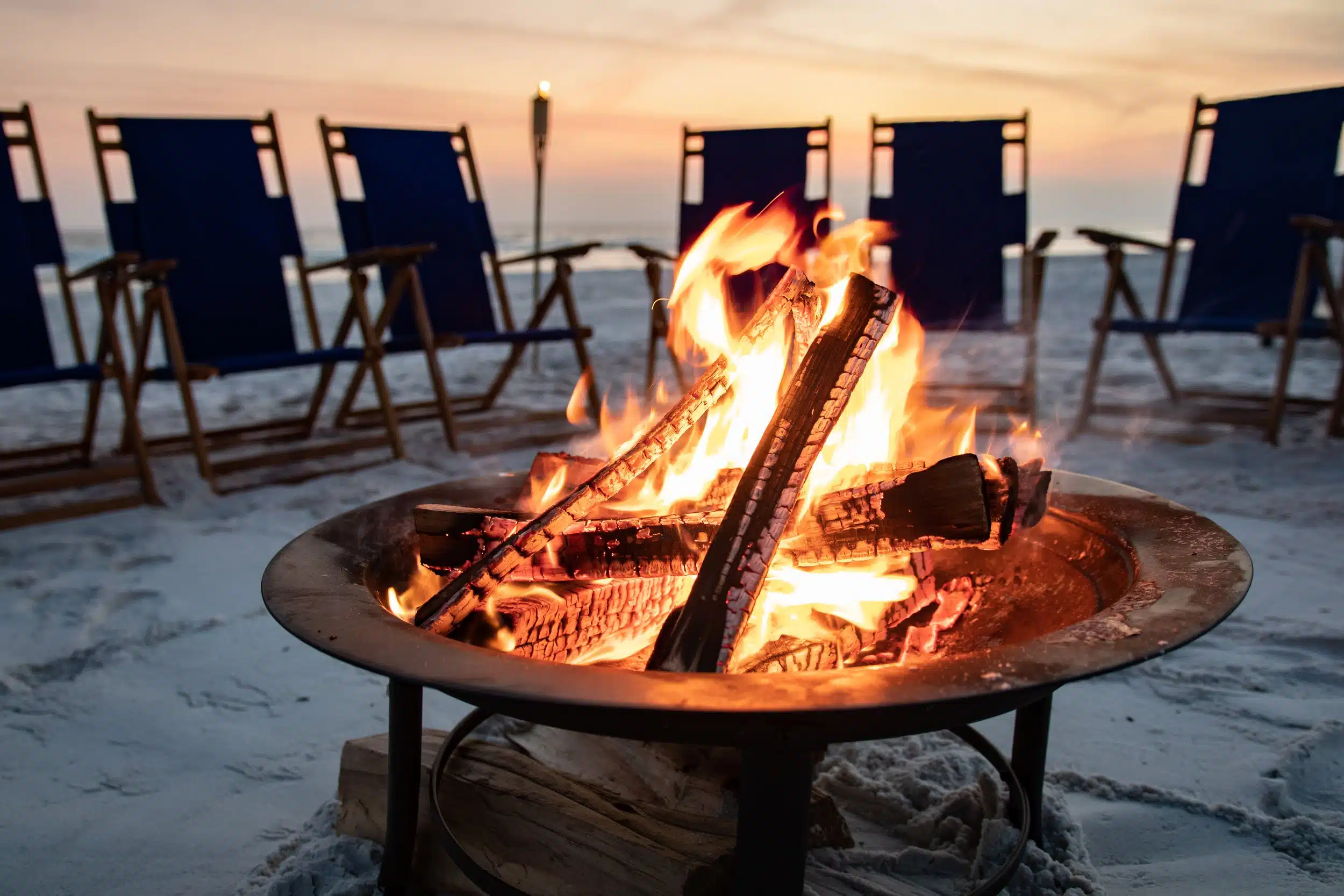 Beach bonfire and picnic setup for public beach accesses between Inlet Beach, Seacrest, Watercolor, Santa Rosa, and Mirimar