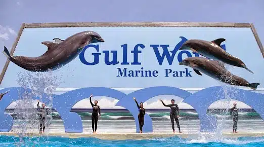 Gulf World Marine Park is located at 15412 Front Beach Road, Panama City Beach, Florida 32413. Open daily rain or shine. The marine park is home to a variety of animal species including bottlenose dolphins, California sea lions, harbor seals, penguins, tropical birds, stingrays