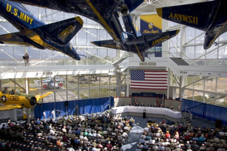 Experience hands-on history at the National Naval Aviation Museum located on board Pensacola Naval Air Station. See more than 4,000 artifacts and over 150 beautifully restored aircraft representing Navy, Marine Corps and Coast Guard aviation. Experience the thrill of flight in the Flight Simulators, catch all the drama and power of the amazing Giant Screen Digital Theater and refresh with a tasty lunch in the authentic Cubi Bar Cafe. Then take home the spirit of Naval Aviation with a unique memento from The Flight Deck Store.