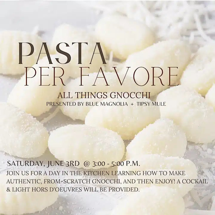 This class is like no other you’ve been to, you will learn the techniques of making gnocchi passed through generations while grazing on delightful small bites. But let’s not stop there, once you’ve mastered pasta making, we will then cook your pasta and serve it for you to enjoy the fruits of your labor!