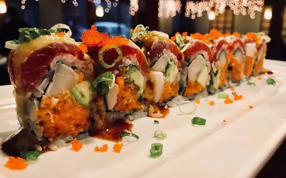 Sakura serves Japanese cuisine, featuring sushi – from flaming sushi roll to sashimi serve atop ice sculptures – and cooked dishes including crunchy tempura, katsu, teriyaki, Udon, Donburi, and hibachi. Plus sake, beer and wine.