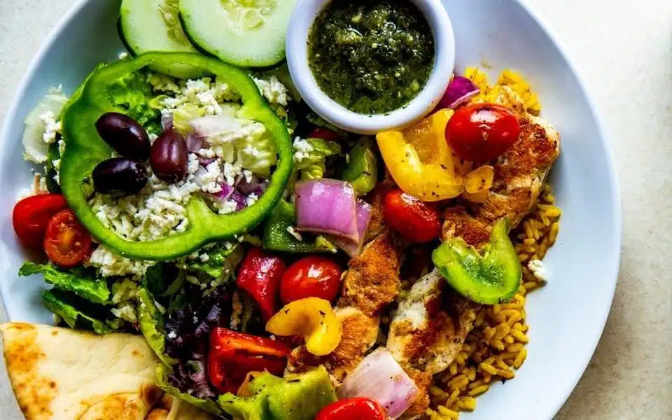 Zoe’s is a counter-service chain serving Mediterranean soups, salads, sandwiches, hummus, tabouli, and kebabs. Plus house-baked cookies and squeezed limeade. Vegan, vegetarian and gluten-free options available.
